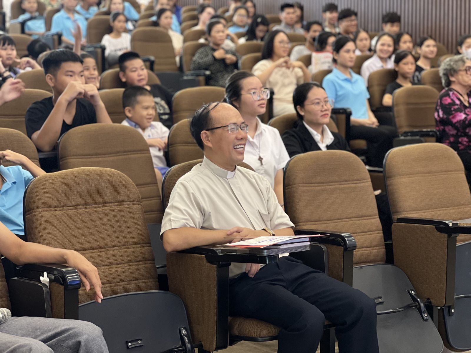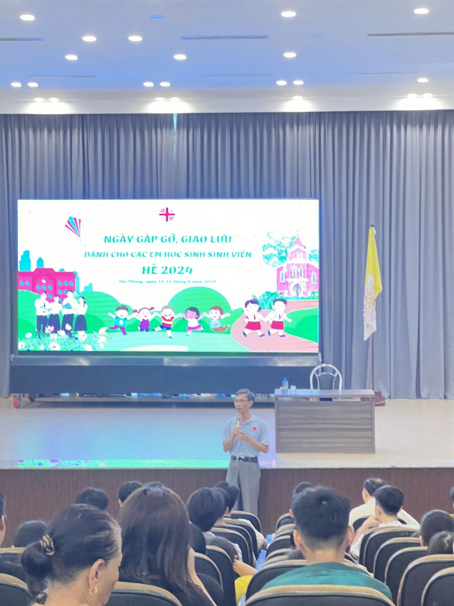 Cha Giám đốc Caritas Giáo phận Phêrô Sanen Nguyễn Văn Hiệu đã chào mừng và hoan nghênh các em về tham dự ngày trại hè tương đối đông đủ, với hơn 100 em đến từ các chương trình Mekong và Lớp học tình thương Nhà thờ Chính tòa.
